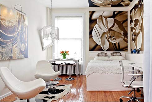 Nhà thiết kế đến từ Mỹ Georgieva Malena đã không làm cho đôi vợ chồng trẻ sống trong 20m² này thất vọng. Với diện tích căn hộ quá nhỏ, lại chỉ có một cửa sổ, ánh sáng không đủ vào phòng ngay cả khi trời nắng rực rỡ nhất. Để khắc phục vấn đề này, nhà thiết kế đã lựa chọn tông màu trắng làm tông màu chủ đạo cho căn hộ. Bên cạnh cửa sổ còn thông minh đặt một chiếc gương lớn để phản chiếu ánh sáng vào nhà.