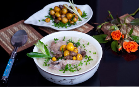 Chế biến: Chim cút làm sạch (bỏ ruột, phổi, phần đầu từ mắt trở lên, chân), ướp mắm muối trong 20 phút tre bi ho. Vỏ quýt tán thành bột cho vào bụng chim cút, cùng gạo tẻ, gạo nếp nước vừa đủ ninh thành cháo.